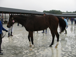 現役時代は神経質な馬でしたが、種牡馬をも引退した今は、悠々自適で非常に穏やかな顔をしています。「競走馬の彼」のイメージが強過ぎて、最初「ソックリな産駒」だと勘違いしたぐらい、昔と気質が違うように感じますが、今の彼の雰囲気が本来の彼の性格なのかもしれませんね。